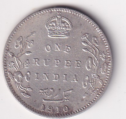 British-India 1 Rupee 1910 – Edward VII Rare Silver Coin #V-226